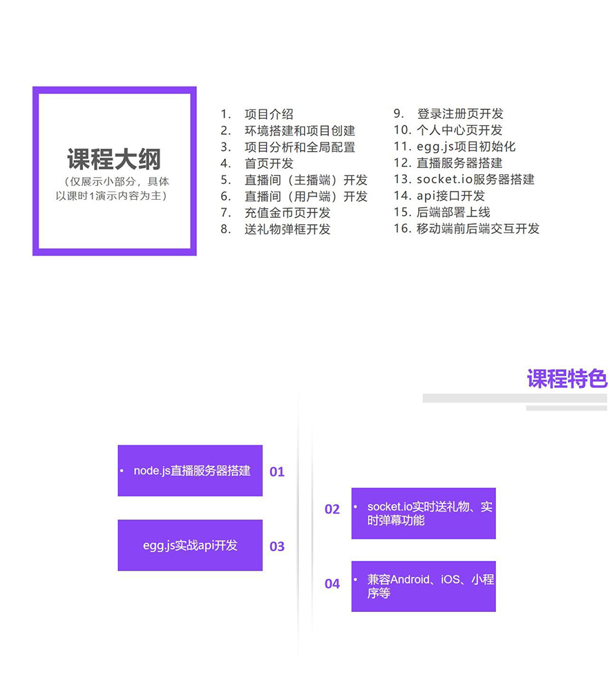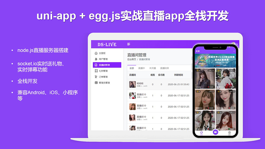 本季度为uni-app egg.js 实战直播app、小程序全栈开发,课程涉及:node.js直播服务器搭建,socket.io实时送礼物、实时弹幕功能等。一次开发,同时搞定Android、iOS、小程序端。